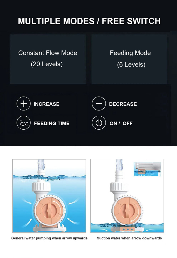 • Internal hidden and switchable design of low water suction intake