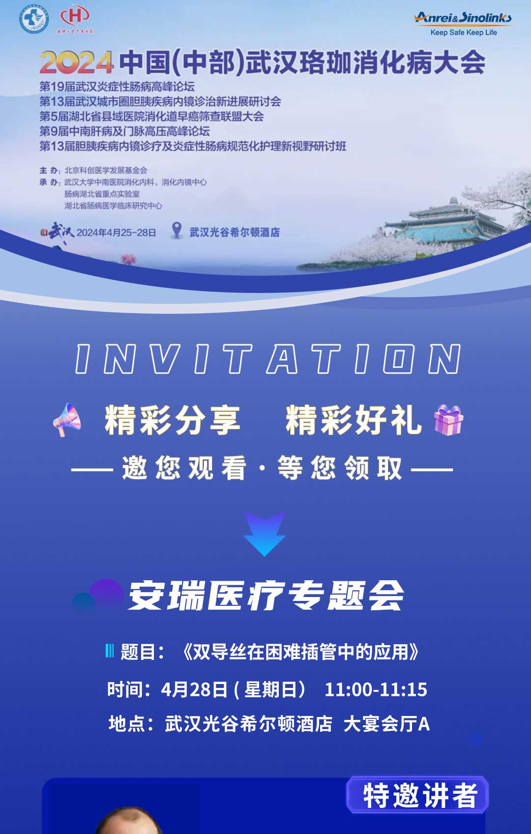 邀請丨安瑞醫(yī)療向您發(fā)出【2024中國(中部)武漢珞珈消化病大會(huì)邀請函】